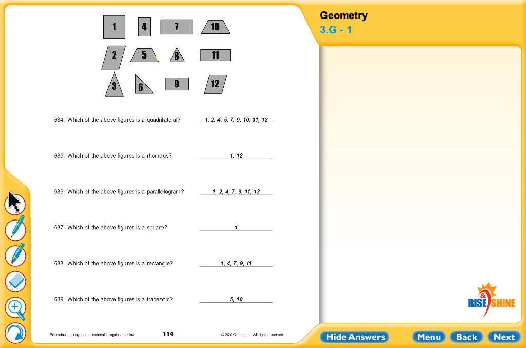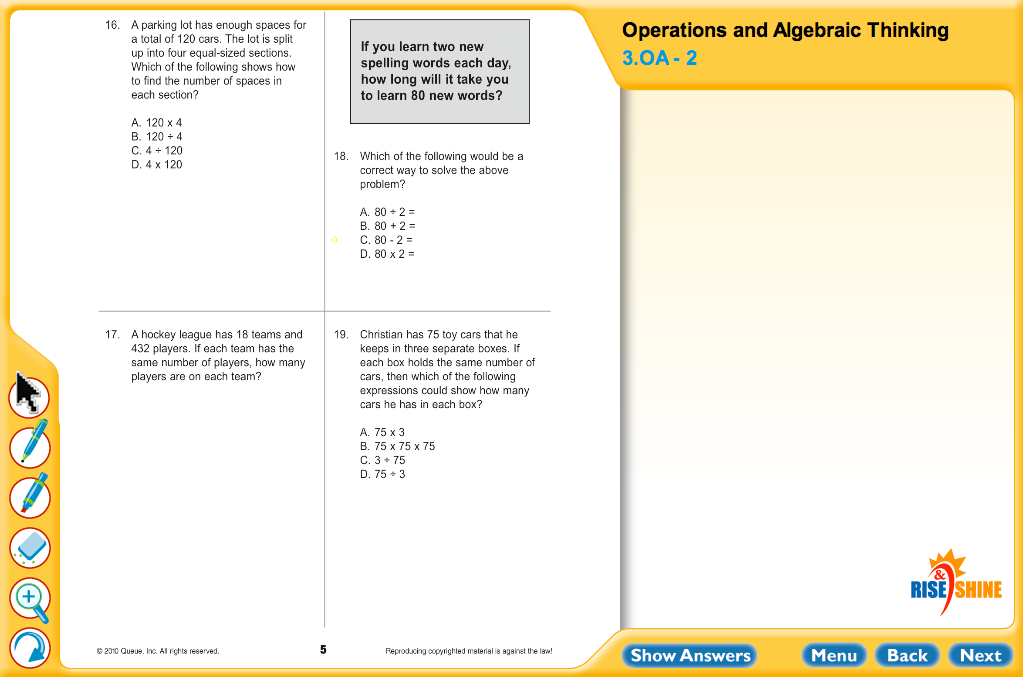 Queue is proud to announce a new way to present and work with our great material–on your interactive whiteboard! The Mathematics whiteboard series contains the same material found in our workbooks. Combined with our workbooks, the Mathematics whiteboard series is an effective tool to keep your entire class engaged. Its interactive features can promote student participation and input.